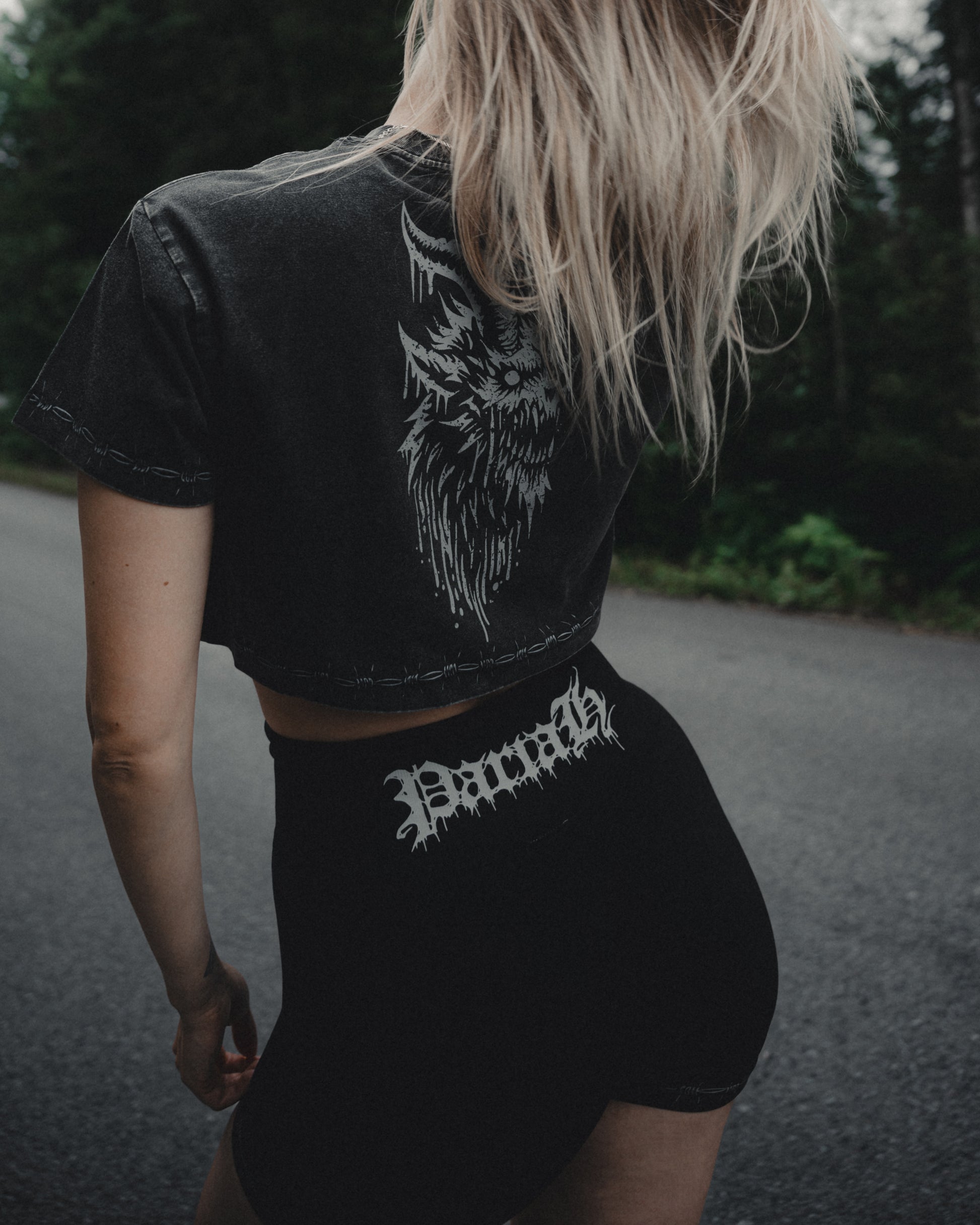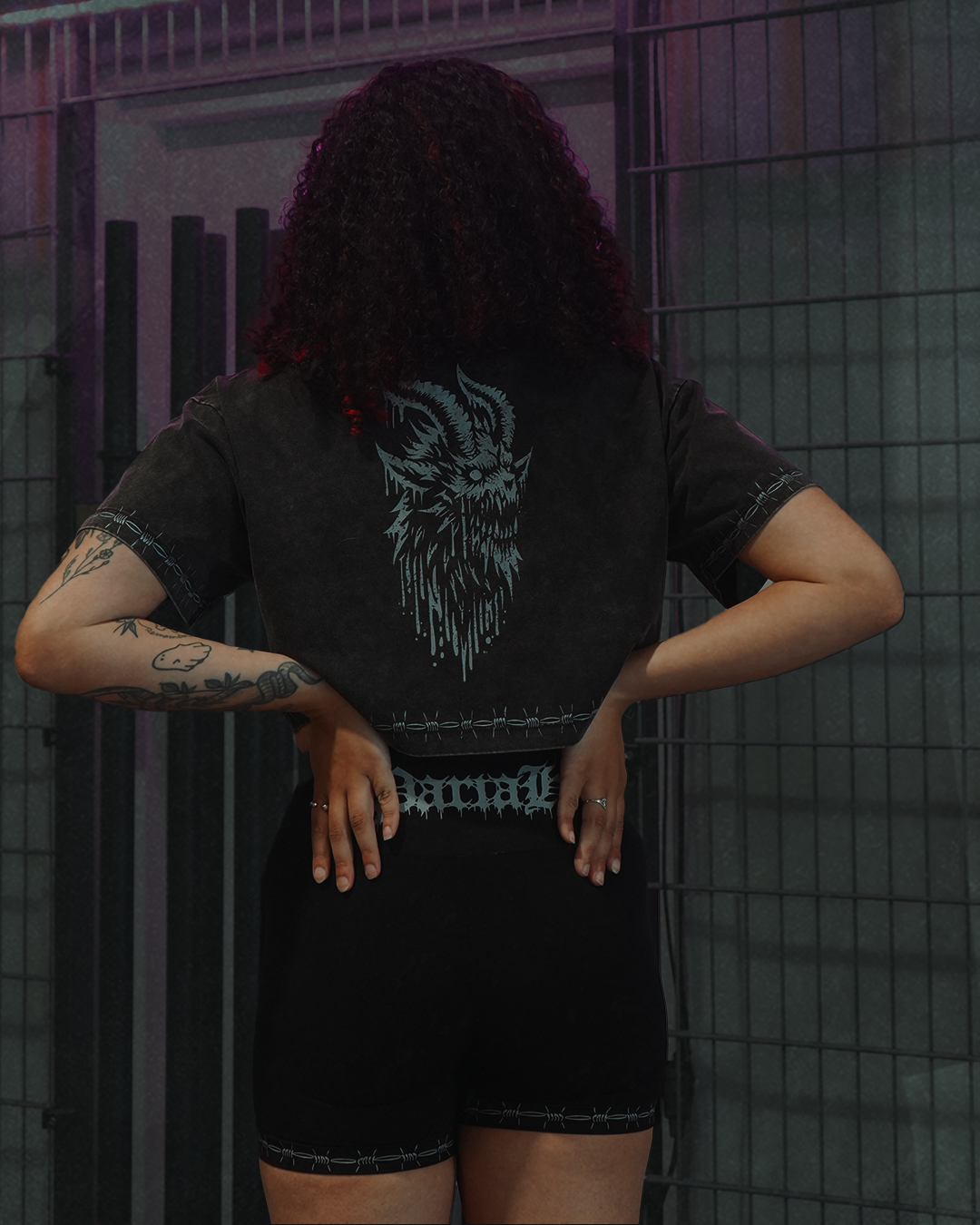 - Pariah logo on waistband, 360 degree barbed wire hem detail